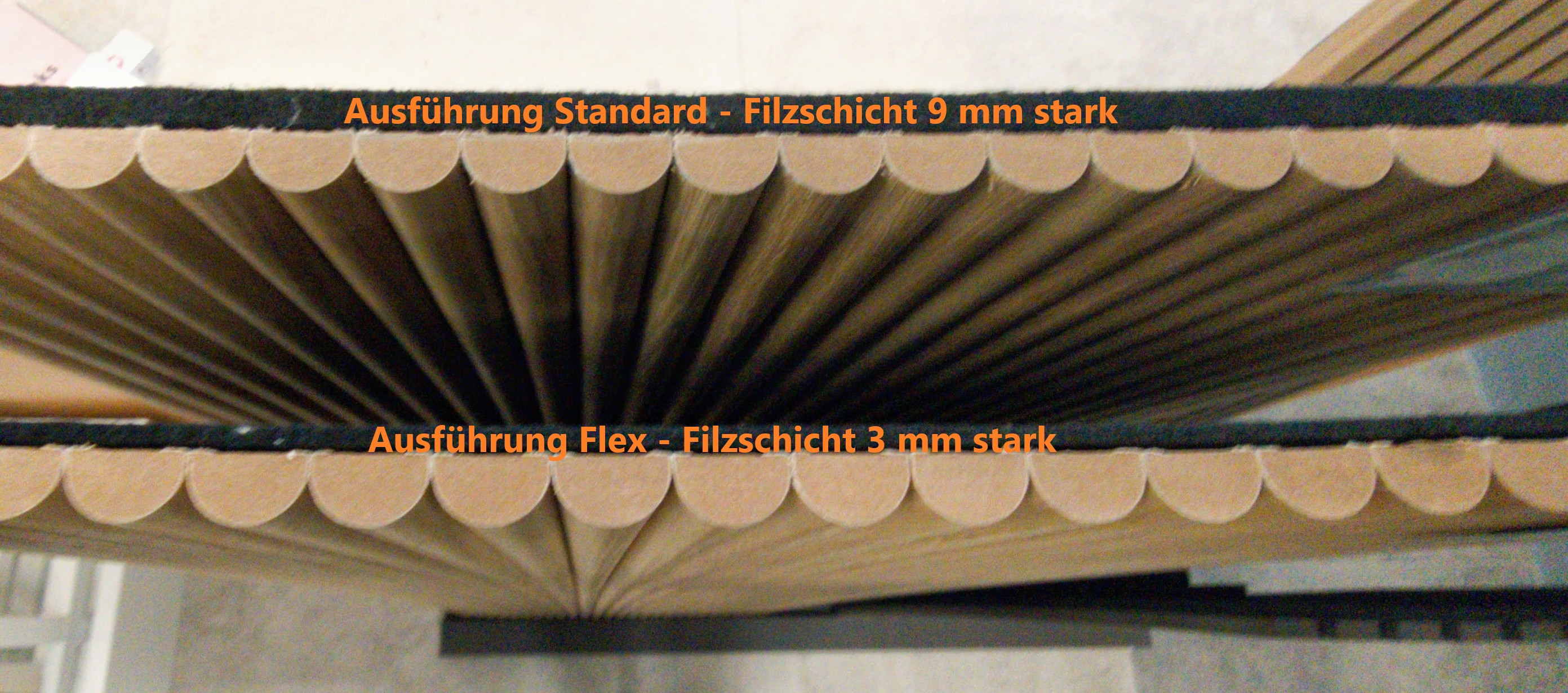 Diese haben dank der rückseitig aufgebrachten Akustikfilzschicht aus recyceltem Polyester, welche es in drei unterschiedlichen Stärken gibt, schallschluckende Eigenschaften und können somit entweder als Schallisolierung oder einfach zur Verbesserung der Raumakustik eingesetzt werden. Die Front, bestückt mit halbrunden oder eckigen Lamellen aus MDF in vier verschiedenen Furnieren, ist ein optisches Highlight für jeden Raum, und dank der hohen Flexibilität lassen sich mit ihnen auch Eckbereiche perfekt verkleiden.
